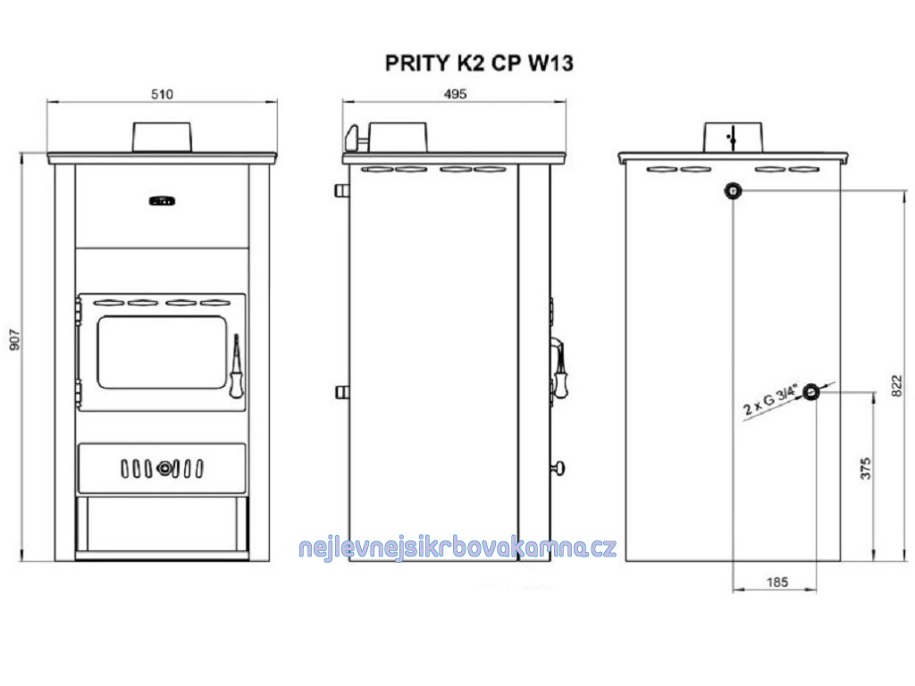 Krbová kamna s výměníkem Prity K2 CP W13 - černá