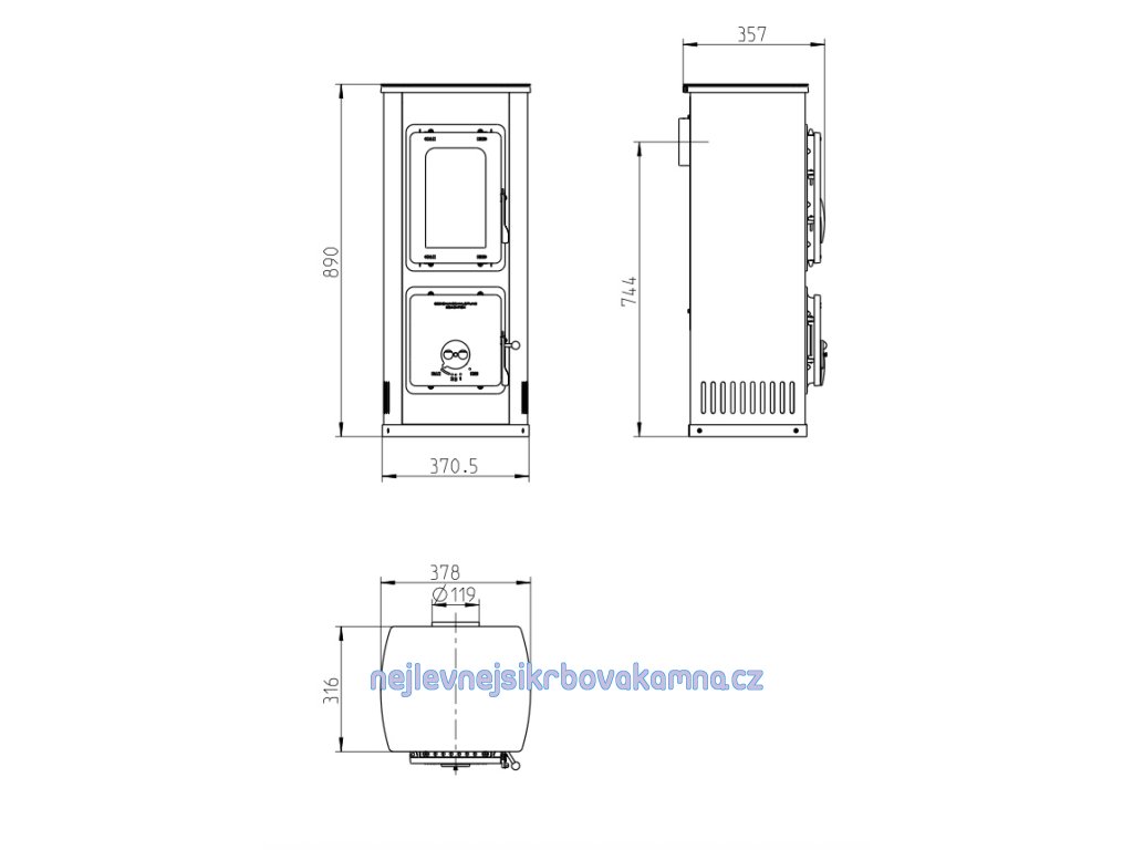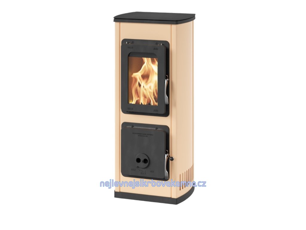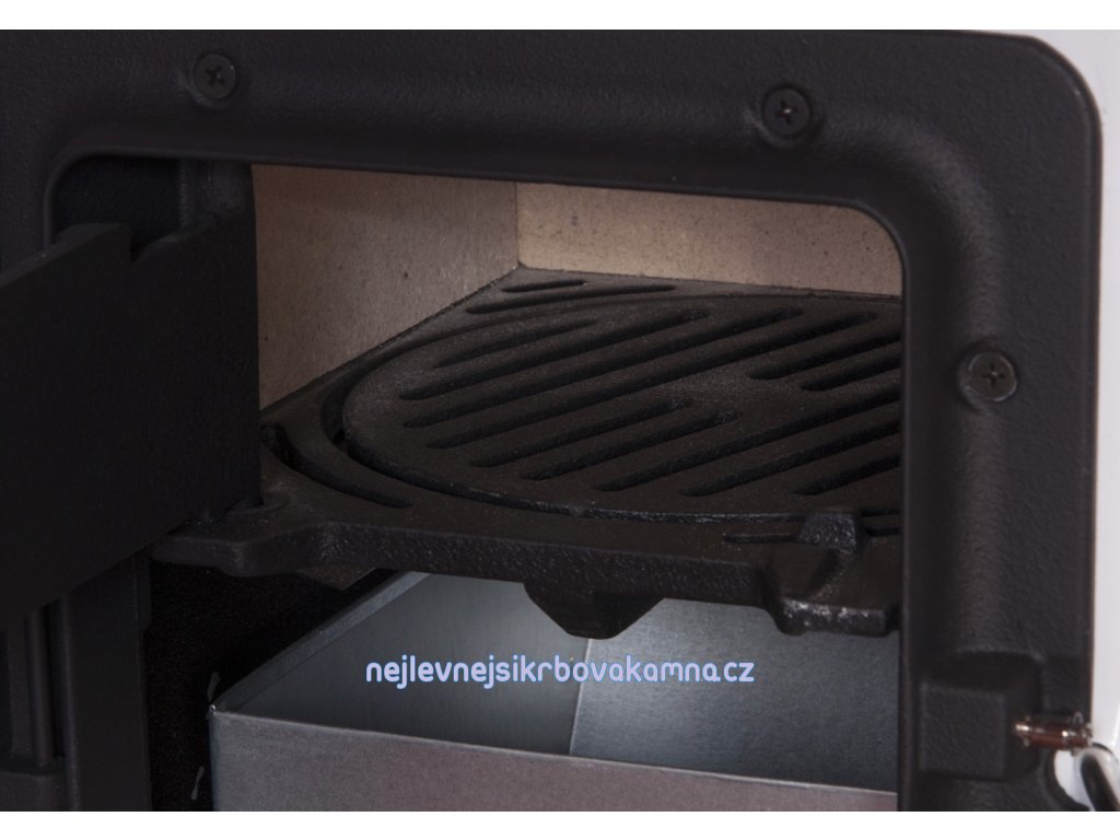 Přikládací a popelníkové dveře jsou z velmi odolné litiny, upravené odolnou barvou proti teplu a otěru.