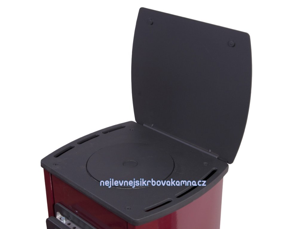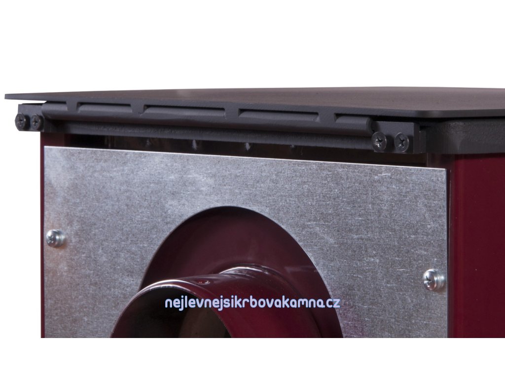 Přiklápěcí plotýnka uzavírá otvory druhého pláště a prodlužuje dobu hoření, kamna předávají teplo okolí sáláním. tento způsob topení stabilizuje topení.