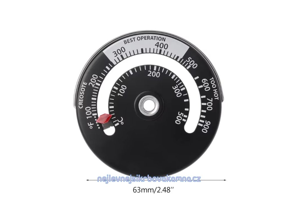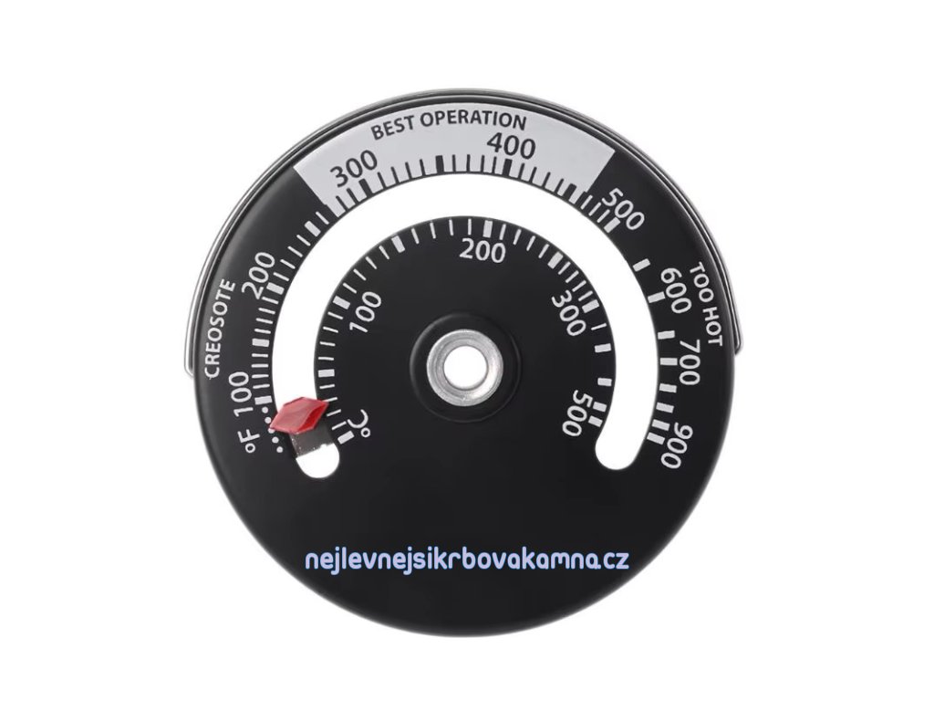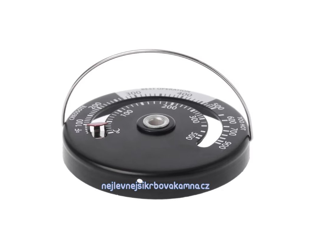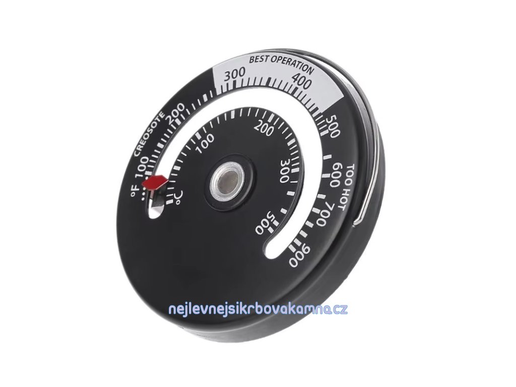 Magnetický teploměr indikuje teplotu spalin proudících do komína, čímž pomáhá optimalizovat proces hoření a zabraňuje neúčinnému vytápění.
