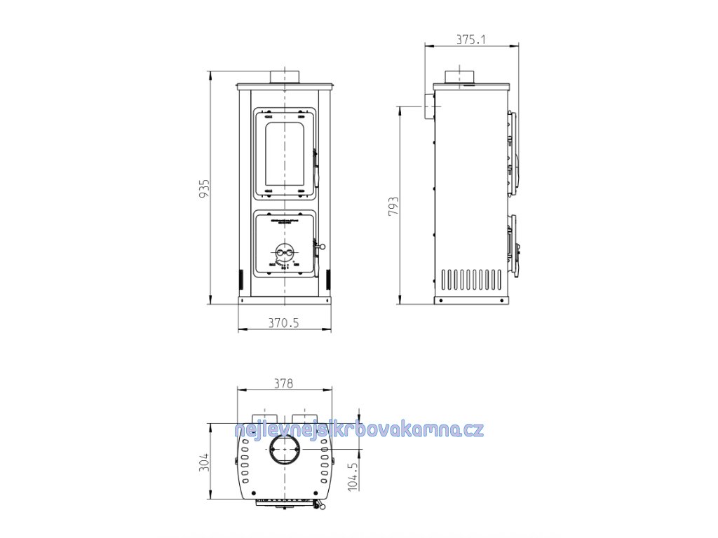| Rozměr - výška včetně hrdla kouřovodu | 935 mm |