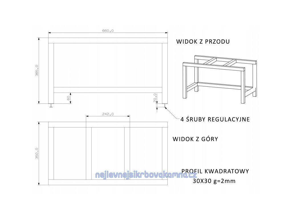 Rozměry rámu 350 x 660 x 380 mm - vyrobeno z ocelového profilu 30 x 30 mm o tloušťce stěny 2 mm