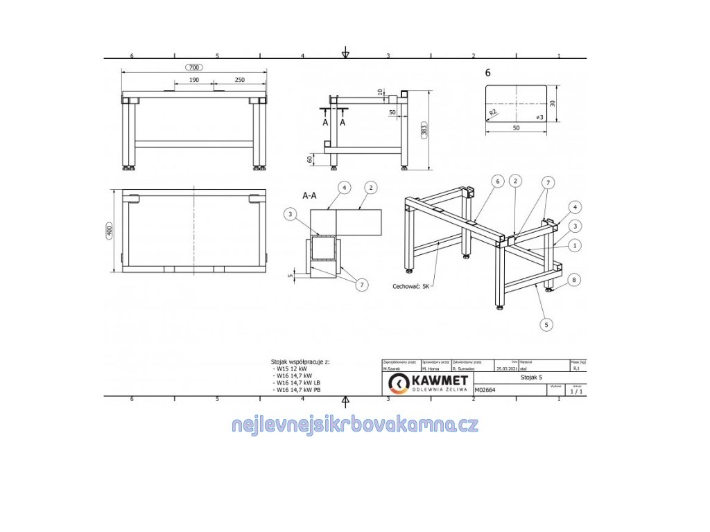 Stojan pod krbovou vložku 700x400x383 mm