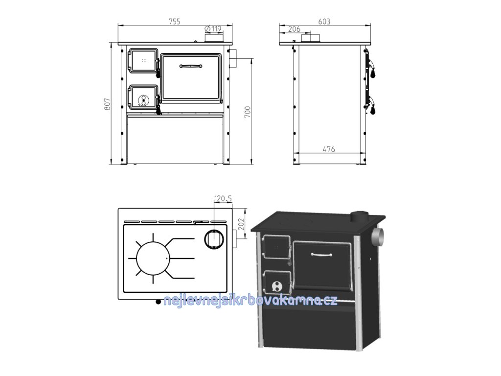 Sporák na tuhá paliva FIKO 70 Box černý levý